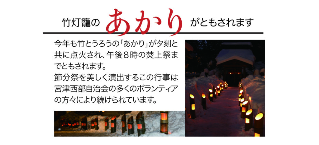また夕刻から竹とうろうによるイベントが用意されています。幽玄の神域をお楽しみください。